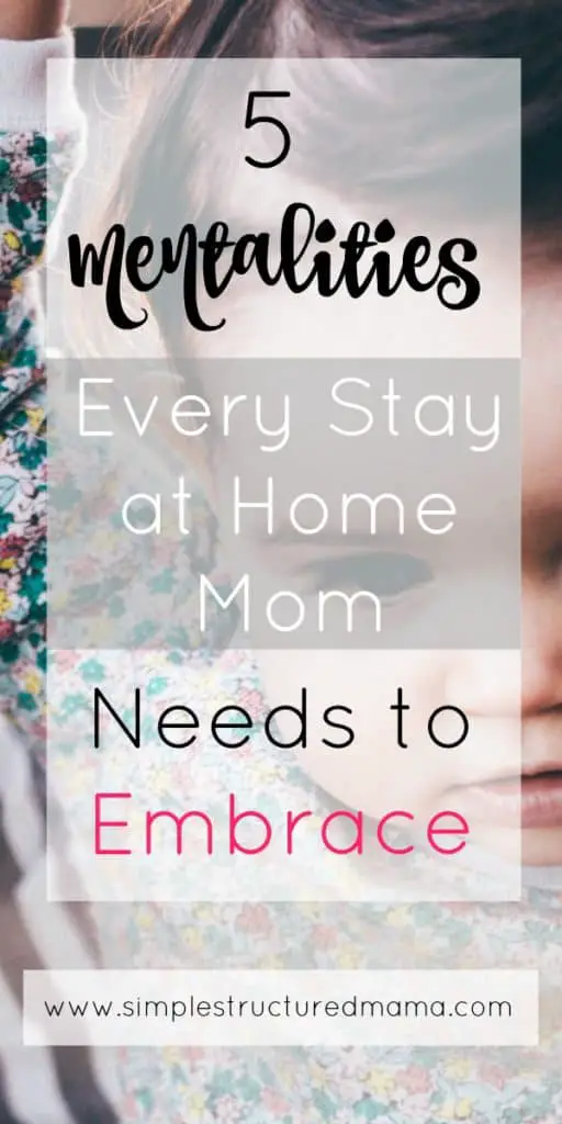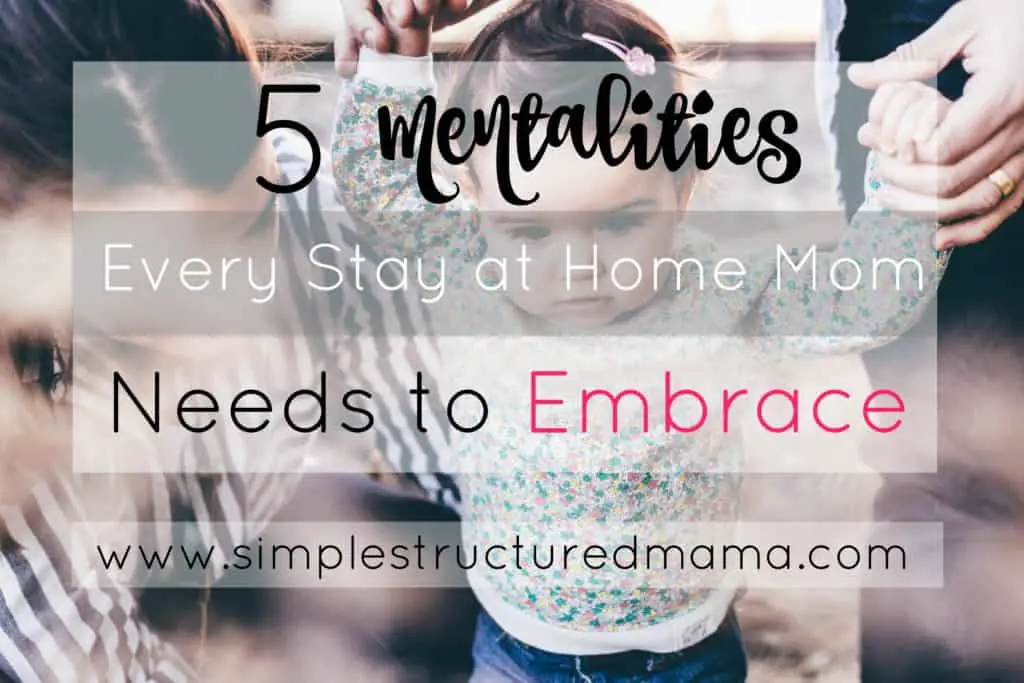 But this is a reality that I know many moms find themselves in. They don’t understand, like I didn’t, why things aren’t as they thought they would be and why the struggle is so real. That’s why today, I want to share with you five mentalities I believe every stay at home mom will need to embrace to avoid falling into mental traps and unnecessary guilt. I’ve also included actionable steps you can take to incorporate these into your daily life. May these hard-earned lessons serve to make your transition as easy as possible!