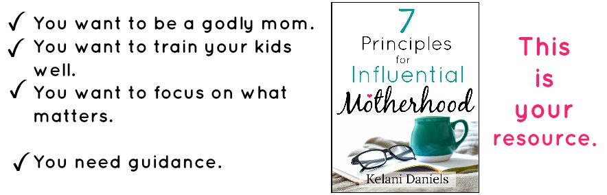 So what can we do? Take heed to our actions (words, tones, things we do). Be who we want to train your kids to be. Become disciplined mamas and exercise self-control. And work diligently, thoroughly, and faithfully at our daily duties!